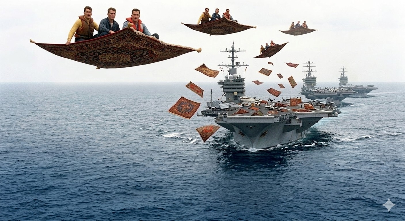 Újabb tudósításunk ez az illuminátusok és a gyíkemberek közötti évezredes, eddig árnyékban zajló konfliktus legújabb fejezetéről. A hírszerzési forrásaink szerint a támadás nem véletlenszerű volt: az iráni stratégák tűpontosan célozták meg az amerikai egységeket, ezzel is jelezve, hogy a mágia és a technológia összecsapásában ők nem ismernek tréfát. A fedélzeten tartózkodó tengerészek állítása szerint a becsapódó szőnyegek olyan puha landolást produkáltak, ami ellen a legmodernebb radarrendszerek is tehetetlennek bizonyultak.